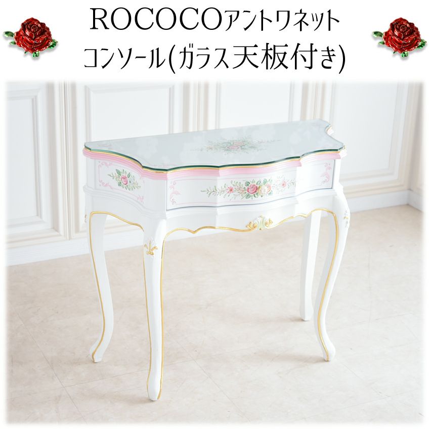 ROCOCO アントワネット コンソール 幅89cm 天板ガラス付