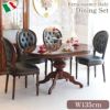 『ルネッサンスイタリア』本物の家具。オリジナルの一味違う、象嵌加工を施した4人用テーブルと本革イタリアングリーンチェアとのセット。マンション向き135cmサイズ。