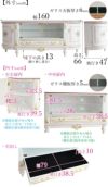 幅160×奥行き47×高さ66床下高さ13(※飾り無し部分)ガラス天板厚さ6mm【内寸】引き出し:幅79×奥行き38.5×高さ10左右扉内:幅33.5×奥行き39.5×高さ42.3※棚板位置3箇所変更可能(棚板位置中央の場合高さ上19/下21.5)中央ガラス扉内:幅81.5×奥行き38.5×高さ28ガラス棚板厚さ5mm※棚板位置3箇所変更可能(棚板位置中央の場合高さ上13.3/下14.5)