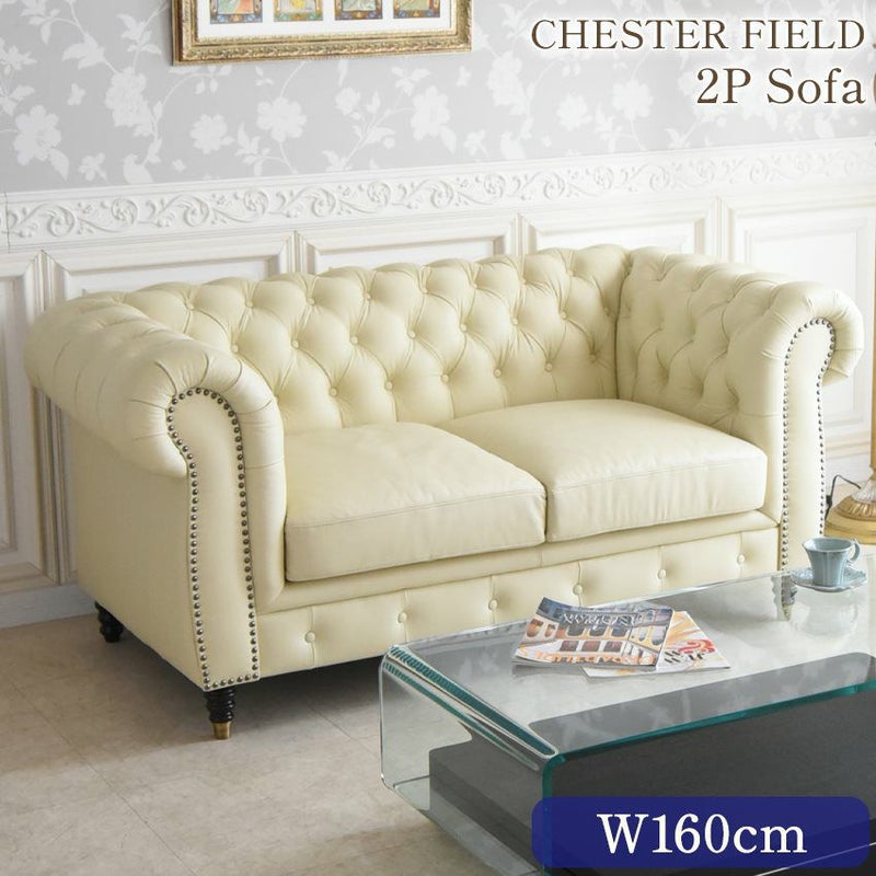 ドイツ製 本革使用 チェスターフィールドソファ 2人掛け インペリアル アイボリー 幅160cm