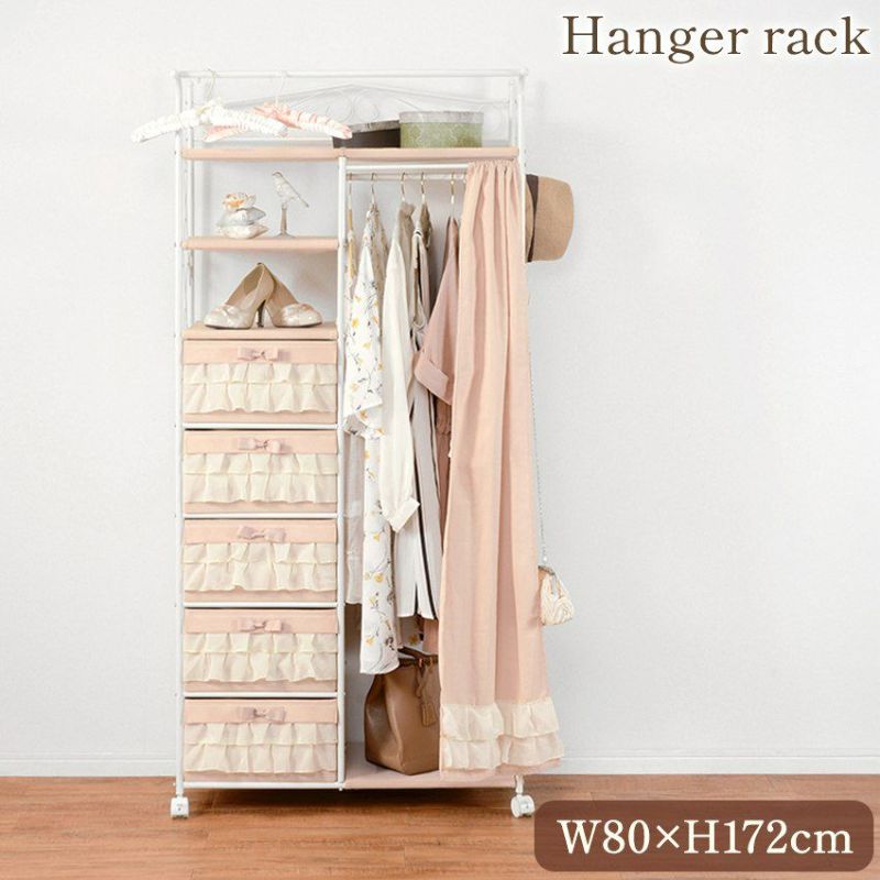 姫系 プリンセス ハンガーラック ピンク キャスター付 5段 幅80cm