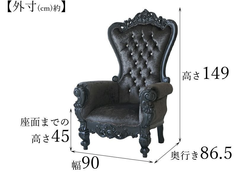 King&Queen ロココ ブラック プリンス ファンタジーチェア 幅90cm