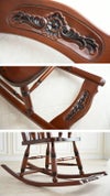 伝統のアンティークデザイン!!癒しとくつろぎの時間をお過ごしください。ロッキングチェアといえばこコレ!!。背部分の柱やアームの滑らかな曲線、王道のロッキングチェアです。