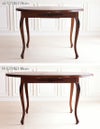 便利な伸長式テーブルです。普段はコンパクトに、来客時には天板を広げて使用できます。伸長用天板は、テーブル内に格納されているので、 使わない時は邪魔になりません。