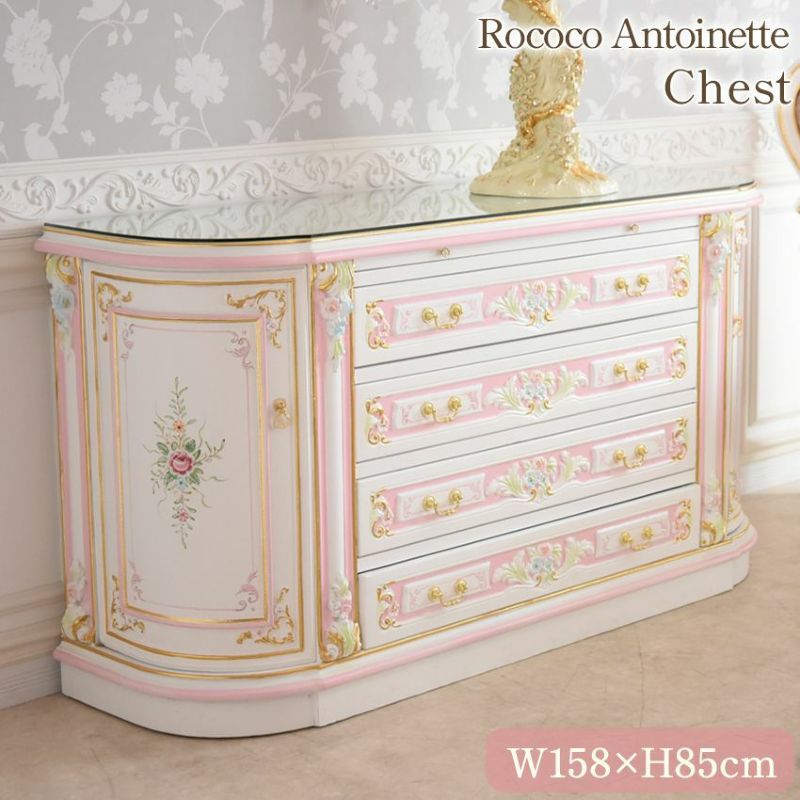 ROCOCO アントワネット グランデチェスト ガラス付 幅158cm
