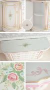 ガラス天板付きなので汚れを気にせず使うことができ、汚れてもすぐに拭き取れるのでお掃除も楽ちんです。天板のハンドペイントの美しさを保つことができます。筆のタッチを感じるハンドペイント。まったく同じものは他に存在しません。ハンドペイント、彫刻、装飾、ピンクやゴールドの色彩など、ROCOCO調にこだわりぬいて仕上げました。