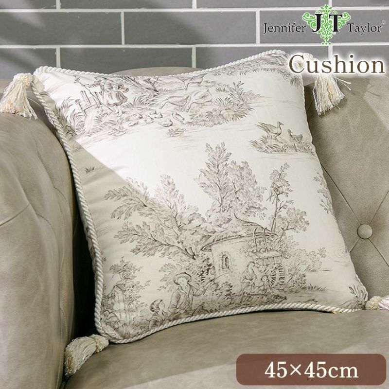 ジェニファーテイラー クッション トワルドジュイ(Toile de Jouy) 大柄 45×45cm