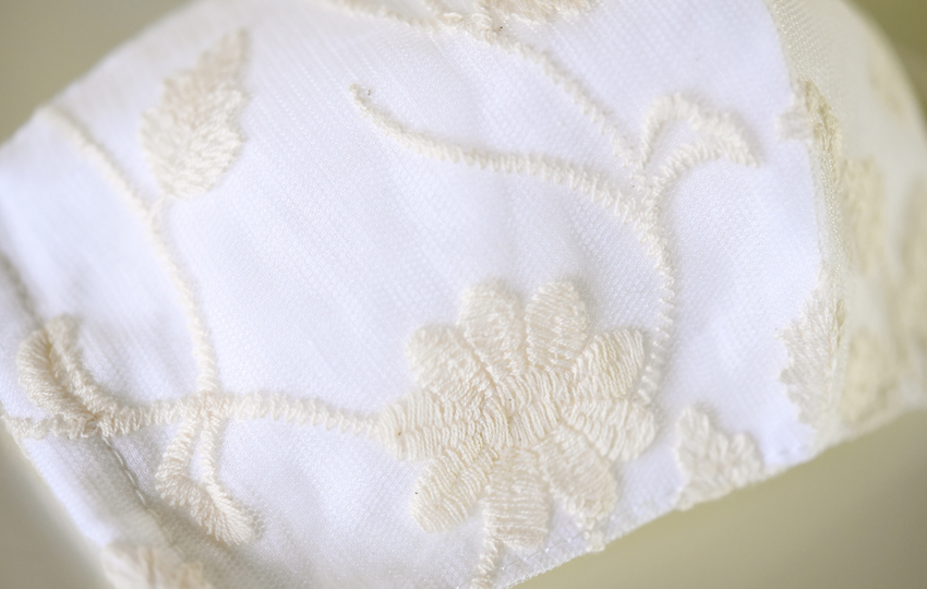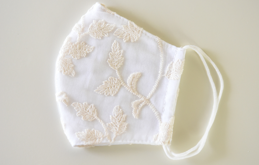 中綿ガーゼの外側にレースをあしらったおしゃれな布マスクです。