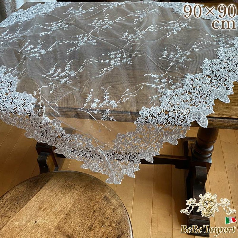 フローズンホワイトフラワー テーブルクロス 90×90cm