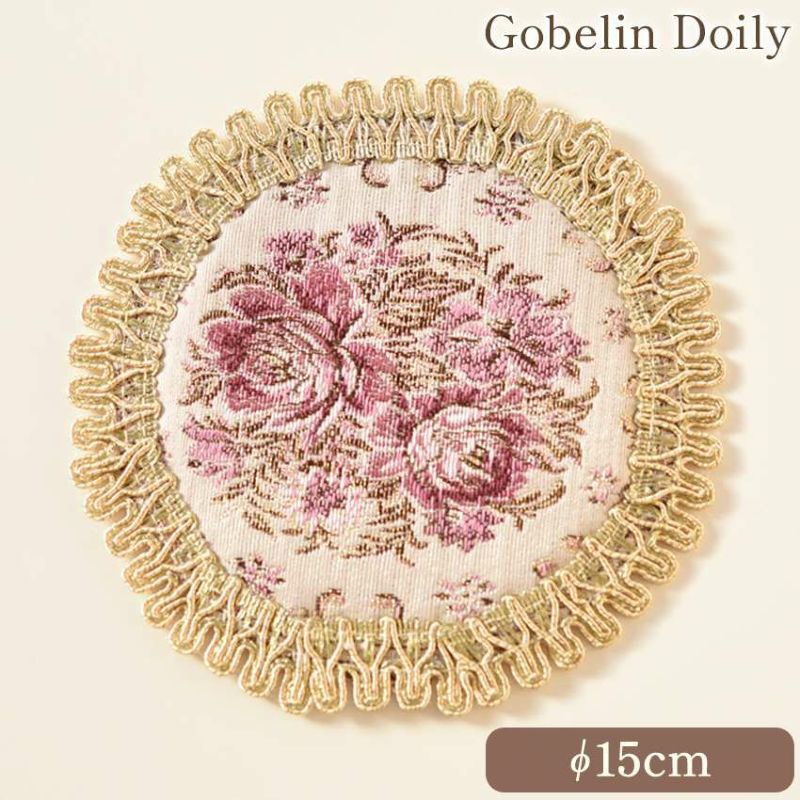 ゴブラン織りのクラシックドイリーでエレガントな雰囲気。魅力的な薔薇のワンポイント。テーブルウェアや花瓶敷におしゃれな演出!