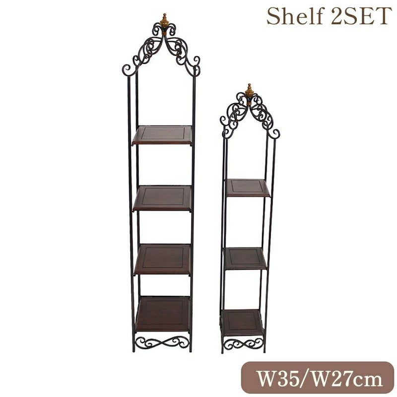 アンティーク調 アイアン 飾り棚(シェルフ) 4段 幅35cm・27cm 2個組