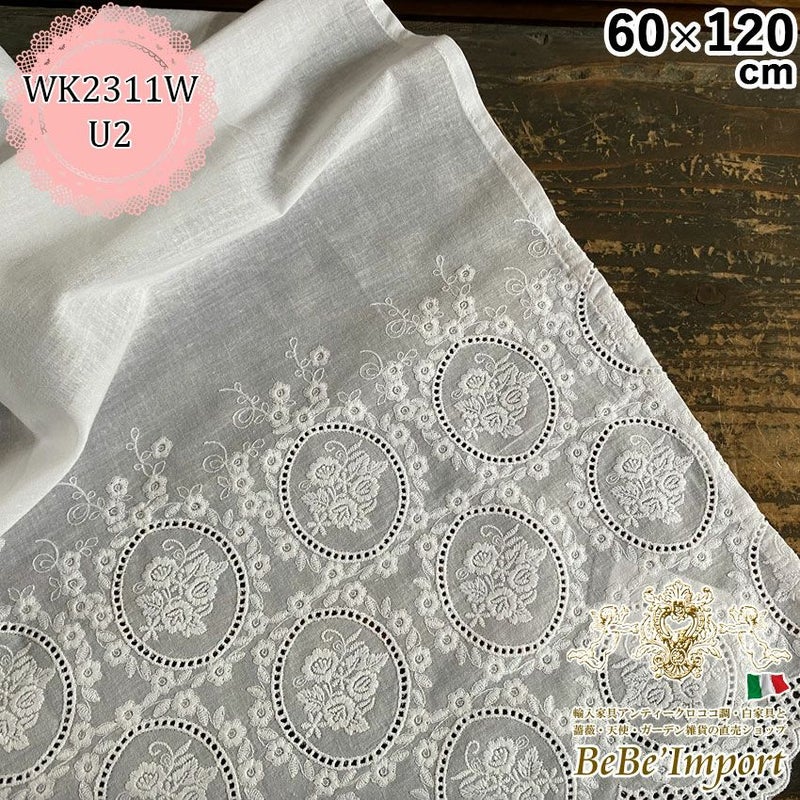 レース カーテン U2 カフェカーテン 60×120(刺繍段数3段)