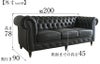 ドイツ製 本革使用 チェスターフィールドソファ 3人掛け インペリアル ブラック 幅200cm