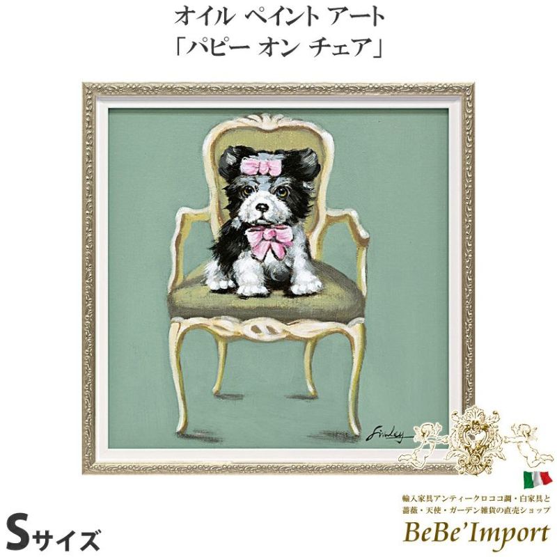 オイルペイントアート (Sサイズ) 「パピー オン チェア」