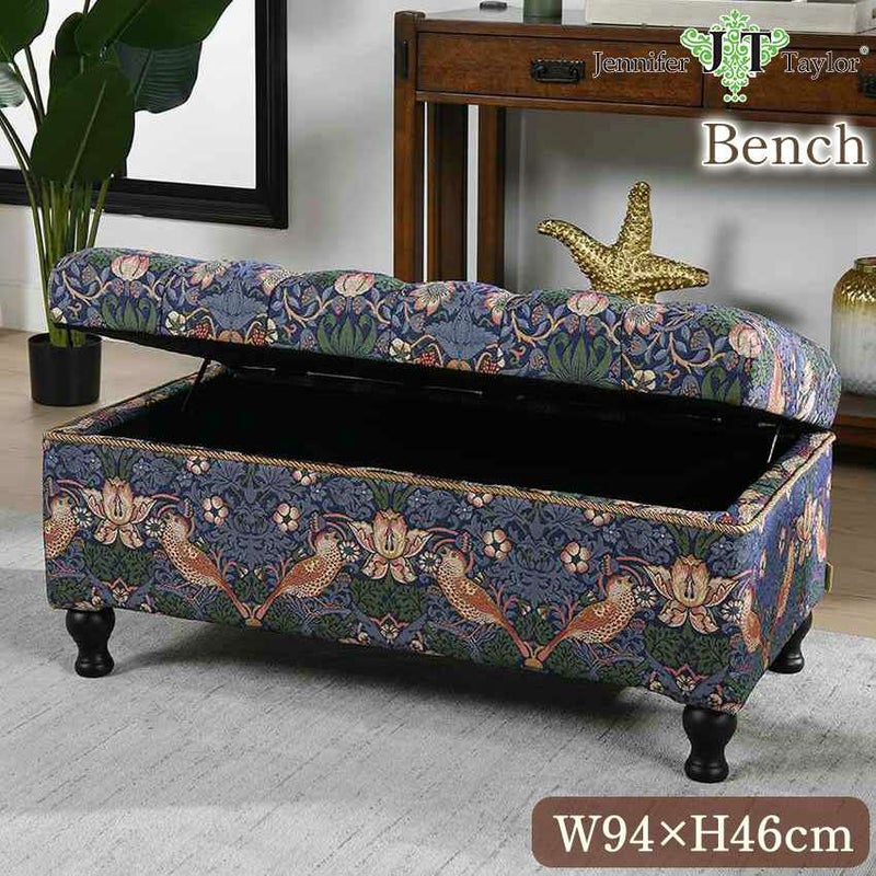 ジェニファーテイラー 収納付ベンチ Strawberry Thief 幅94cm 1人掛け 【送料無料】