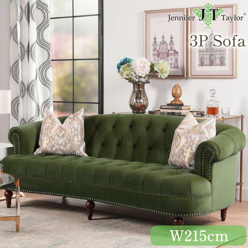 ジェニファーテイラー 3人掛ソファ La Rosa V036 ベロア グリーン 幅215cm 【送料無料/設置サービス付】
