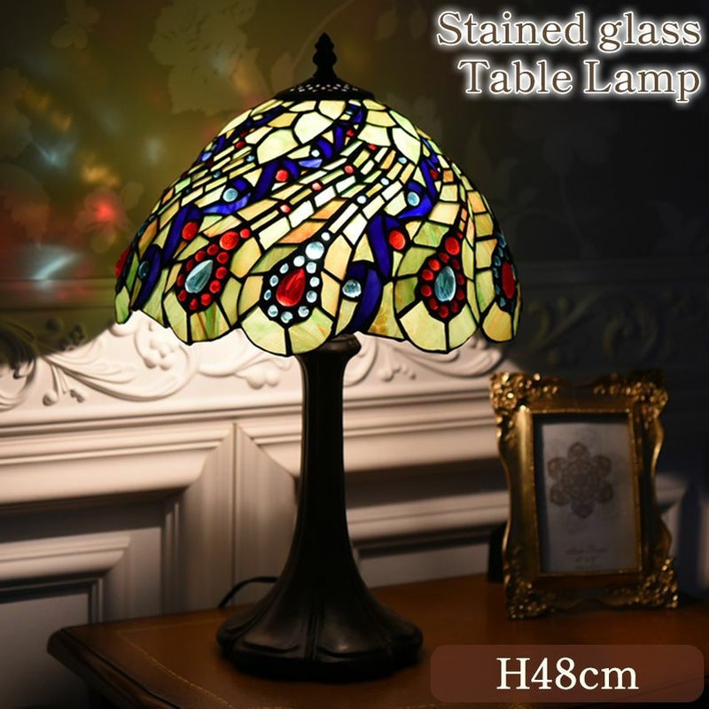 ティファニー スタイル 孔雀 テーブルランプ 高さ48cm