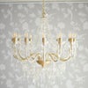 クリアパーツとゴールドのアームがエレガントで大人な雰囲気を演出してくれるシャゴージャスな12灯シャンデリア。お部屋の雰囲気を素敵に変える。12灯の大迫力で空間が一気に華やぎます。一度は憧れる。そんなシャンデリア。