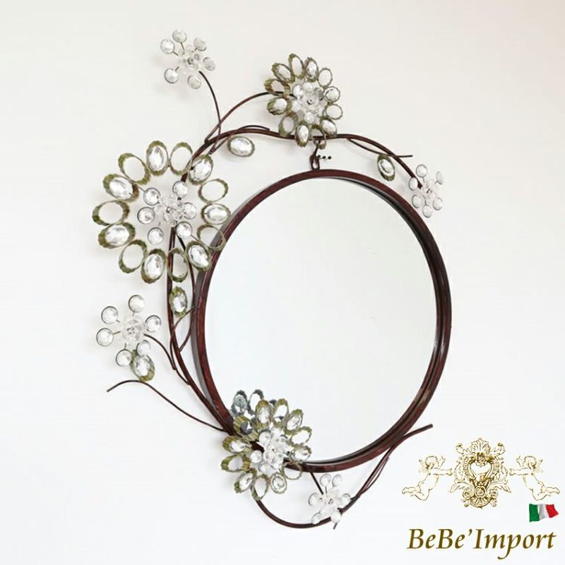 アイアン ウォールデコ ミラー 丸 フラワー 壁飾り 幅68cm 【送料無料】