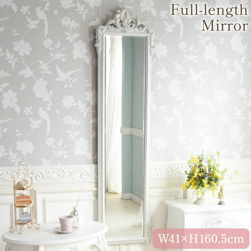 ロココ調 姿見ミラー アンティーク ホワイト 幅41cm
