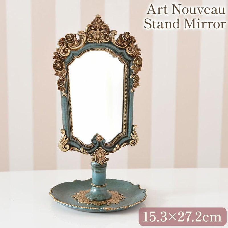 アールヌーヴォー スタンドミラー アンティークブルー