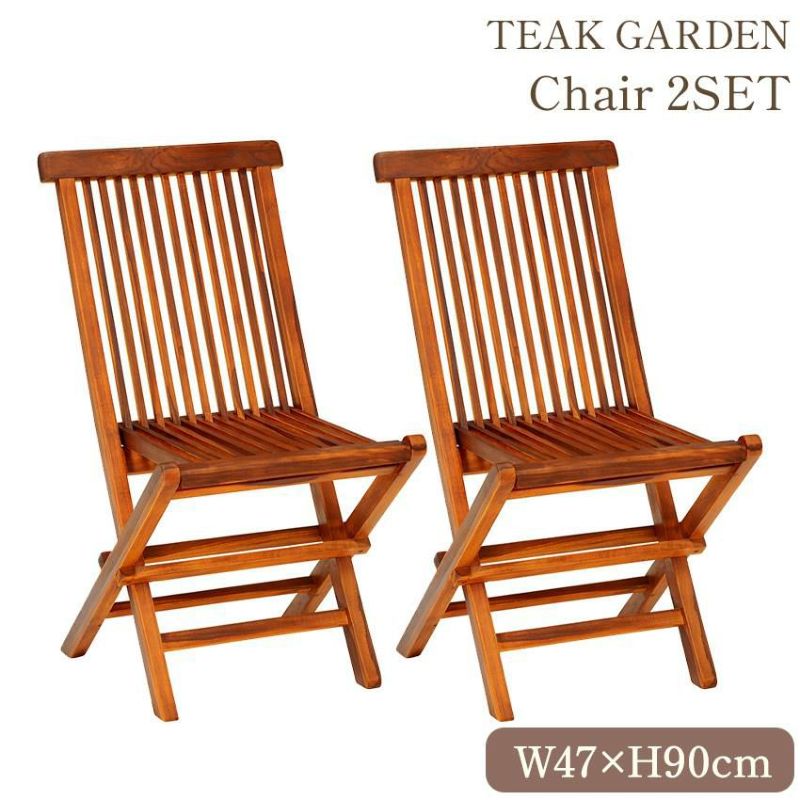 天然木 チーク材 ガーデン チェア 2脚セット 幅47cm