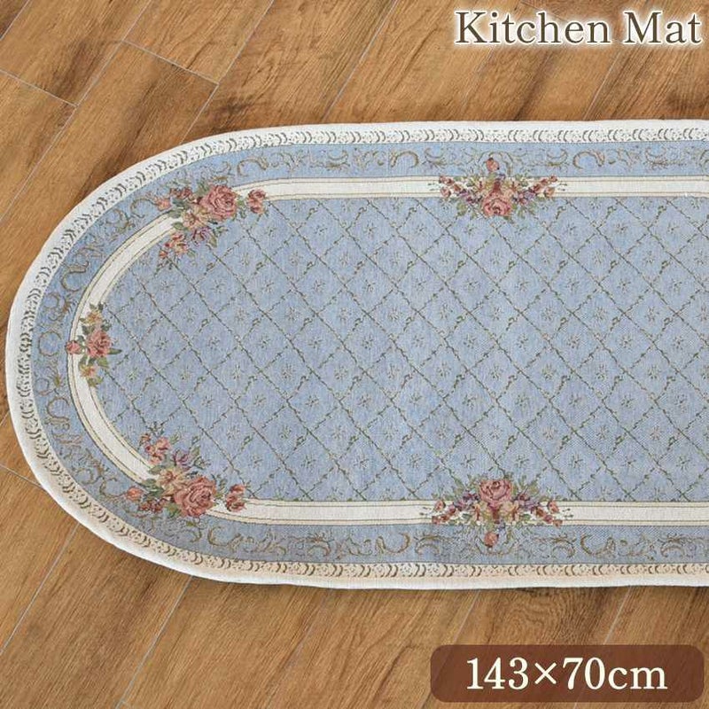 薔薇 シェニール キッチンマット ブルー 143×70cm