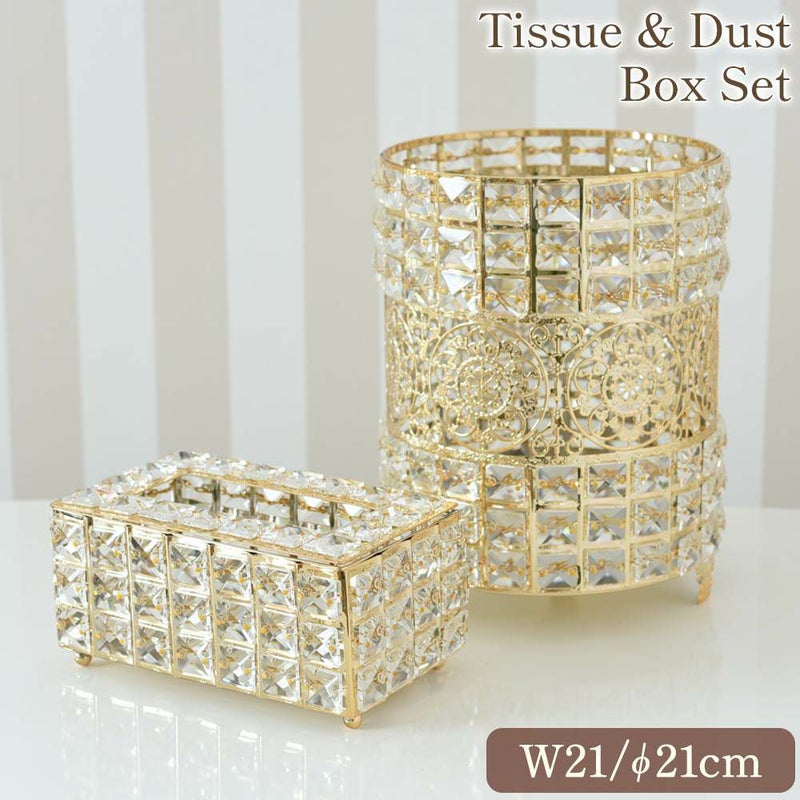キラキラ アールデコ調 ダストボックス&ティッシュボックスケース 2点セット