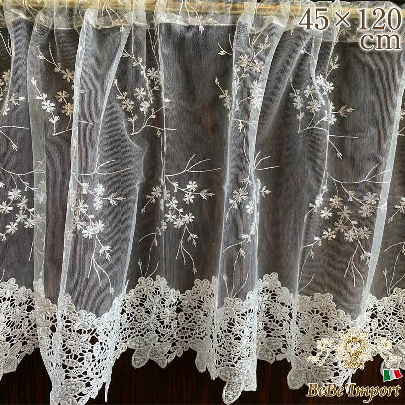 フローズンホワイトフラワー カフェカーテン 45×120cm