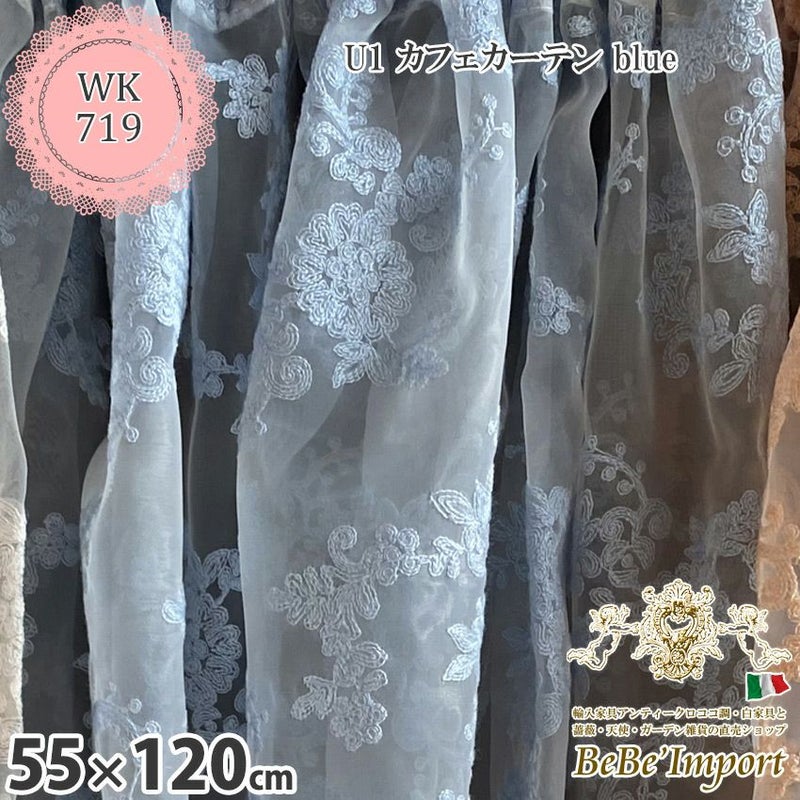 レース カーテン U1 カフェカーテン blue 55×120