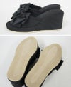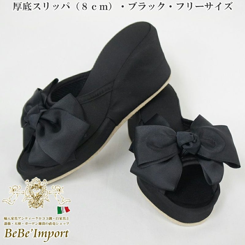 エレガント 厚底スリッパ リボン付き ブラック フリーサイズ(8cmヒール)