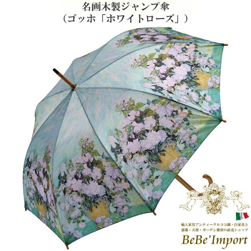 名画木製ジャンプ傘(ゴッホ「ホワイトローズ」)
