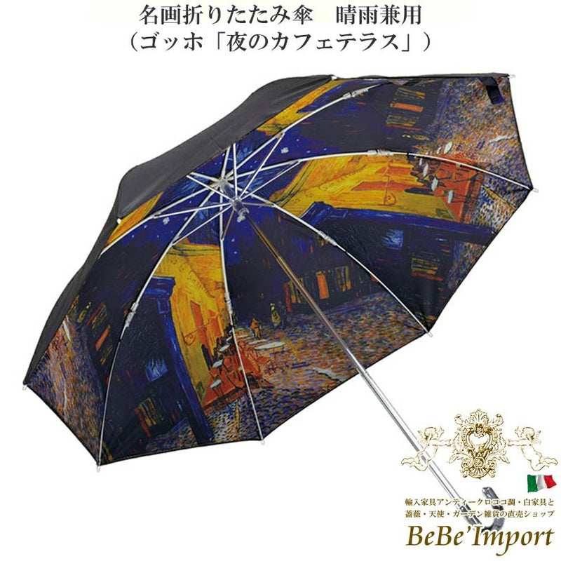 名画折りたたみ傘 晴雨兼用(ゴッホ「夜のカフェテラス」)