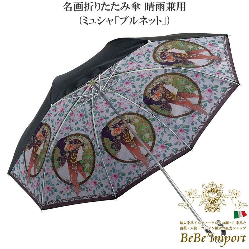 名画折りたたみ傘 晴雨兼用(ミュシャ「ブルネット」)
