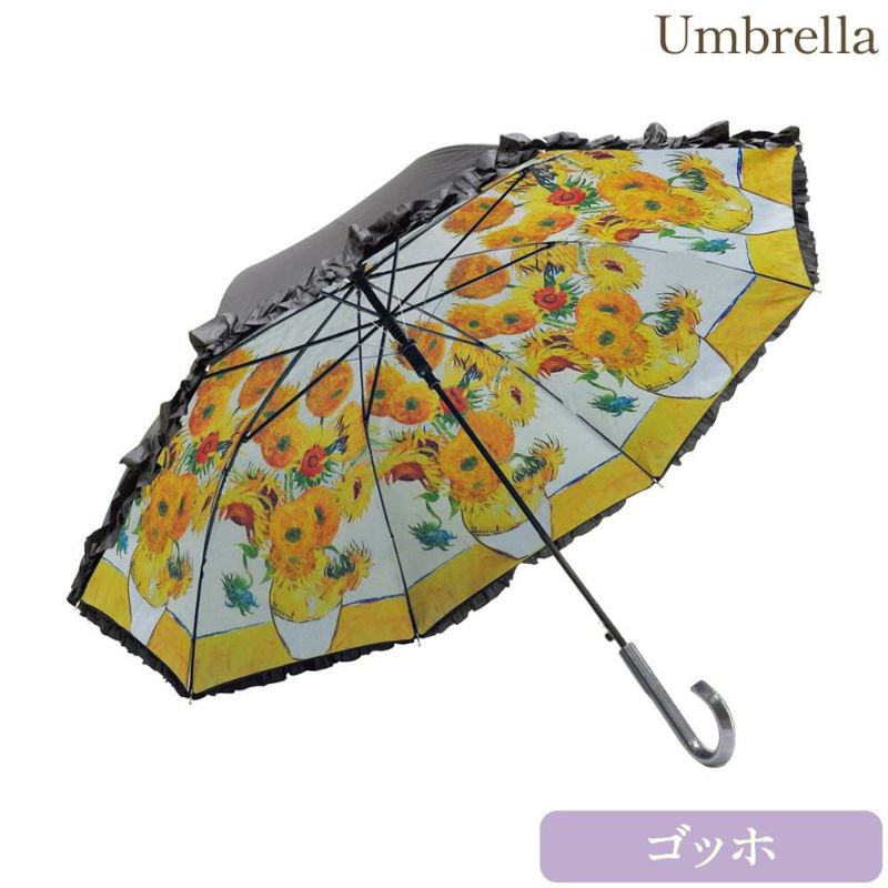 名画フリルジャンプ傘 晴雨兼用(ゴッホ「ひまわり」)