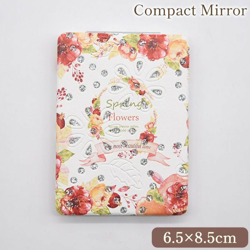 ロココ調 角型 コンパクトミラー ローズD 手鏡 折りたたみ