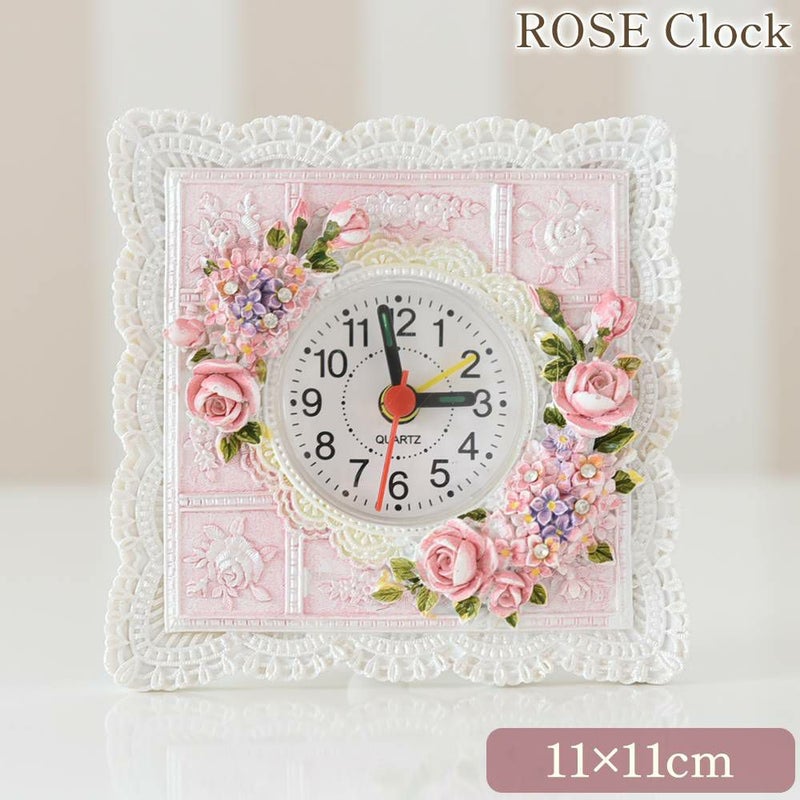 ローズのモチーフにうっとりする、置時計。フリルを連想させるデザインや淡いピンクの色味など、可愛さをたっぷり詰め込んだアイテムです。姫系好きさん必見!