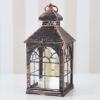 イングリッシュガーデン ランタン キャンドルライト ブラウン 高さ23cm USB充電